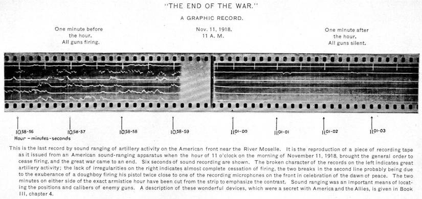 So far as I know this is the only extant evidence of the exact moment when a major war ended: this paper tape from an artillery sound locating device on the Western Front.